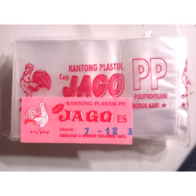 Kantong plastik cap jago ukuran 7 x 12 digunakan untuk bungkus barang kecil atau makanan jajanan untuk jualan harga 500/1000.