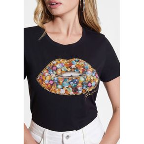 Playera Negra Guess Jewel Lips Talla: XS