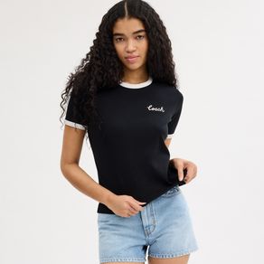 | summary: | Esta camiseta de algodón de corte clásico, un básico de tu guardarropa, presenta nuestra inscripción Coach en cursiva bordada. El cuello redondo está rematado con un ribete en contraste. |