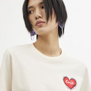 | summary: | Llenos de amor. Esta clásica camiseta de algodón incluye un motivo de corazón de Coach, juguetonamente romántico, con una sobrecapa de purpurina para darle un toque de brillo. Su dulce diseño está acabado con un ribete festoneado bordado con delicadeza en las mangas. |