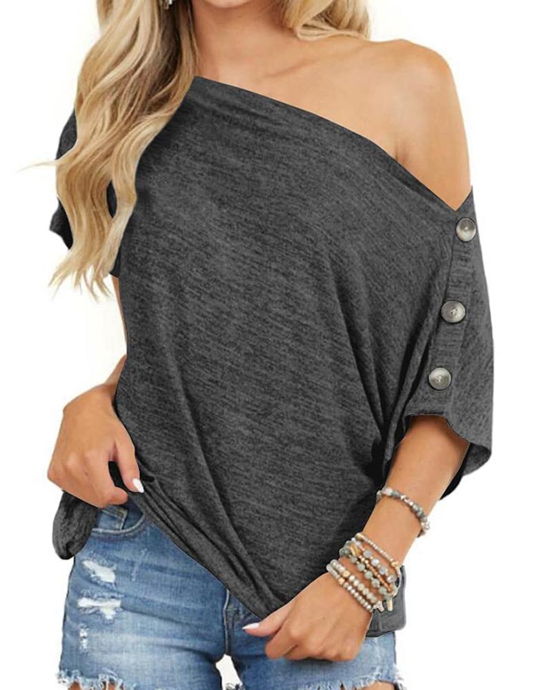 Plus Size Cold Shoulder Button Design T-shirt, Dark grey