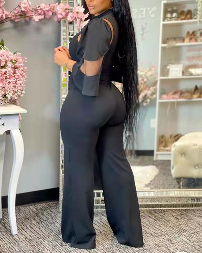 Plus Size Contrast Mesh Zip Back Jumpsuit, Black
