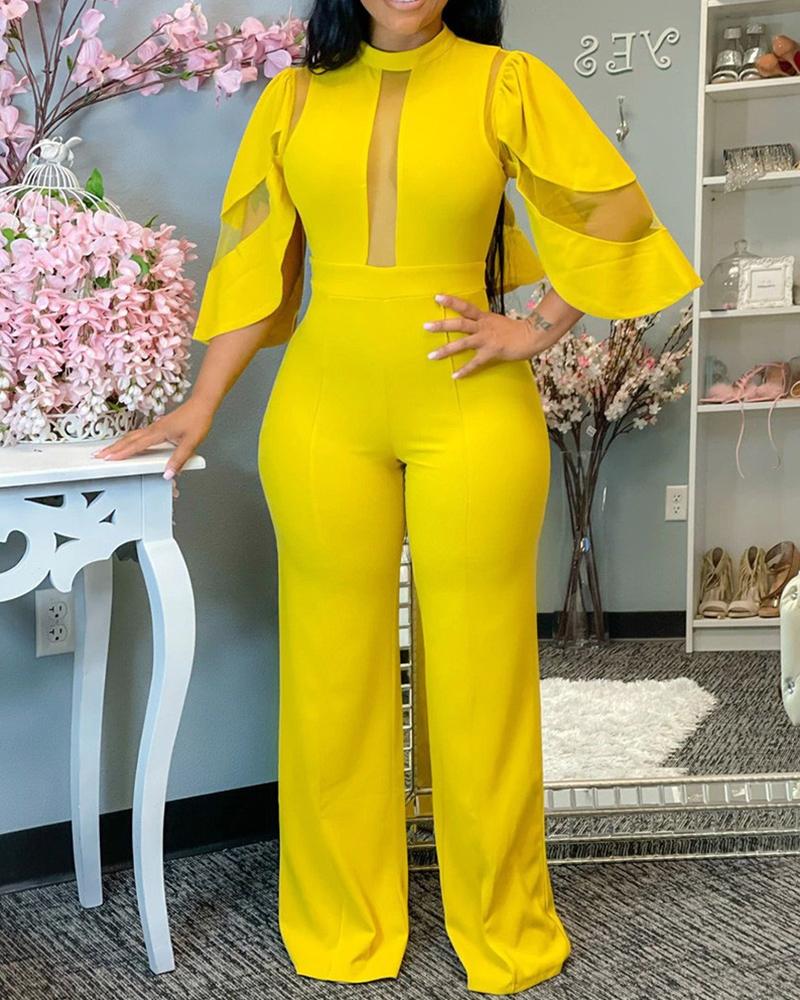 Plus Size Contrast Mesh Zip Back Jumpsuit, Yellow