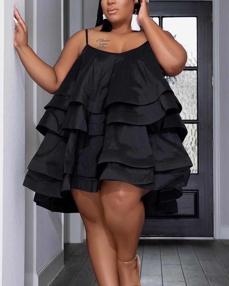 Plus Size Layered Ruffles Spaghetti Strap Prom Dress, Black