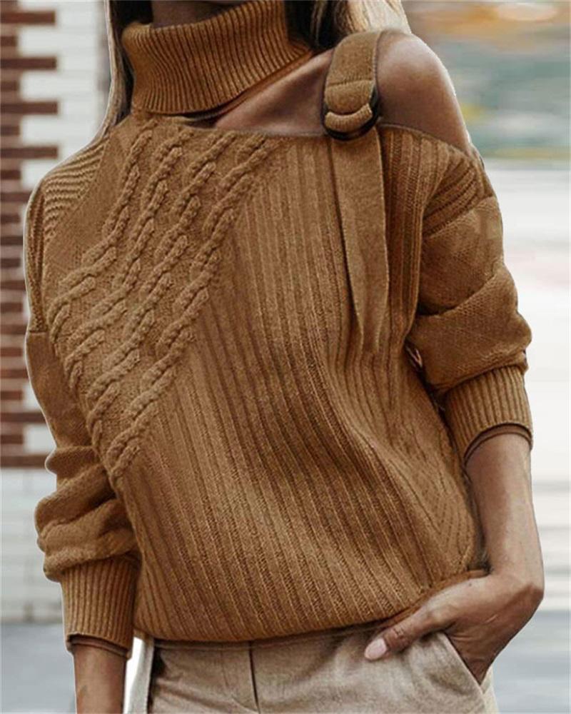 Plus Size O-Ring Cold Shoulder Cable Knit Sweater, Khaki