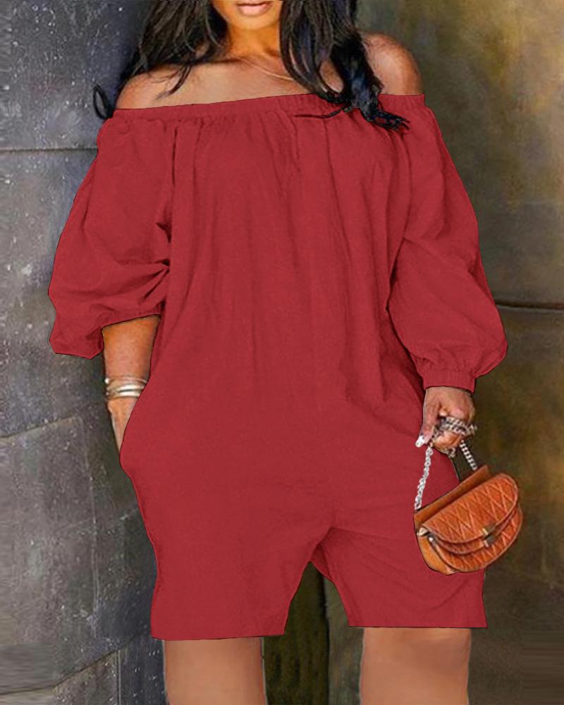 Plus Size Off Shoulder Pocket Design Casual Romper, Red