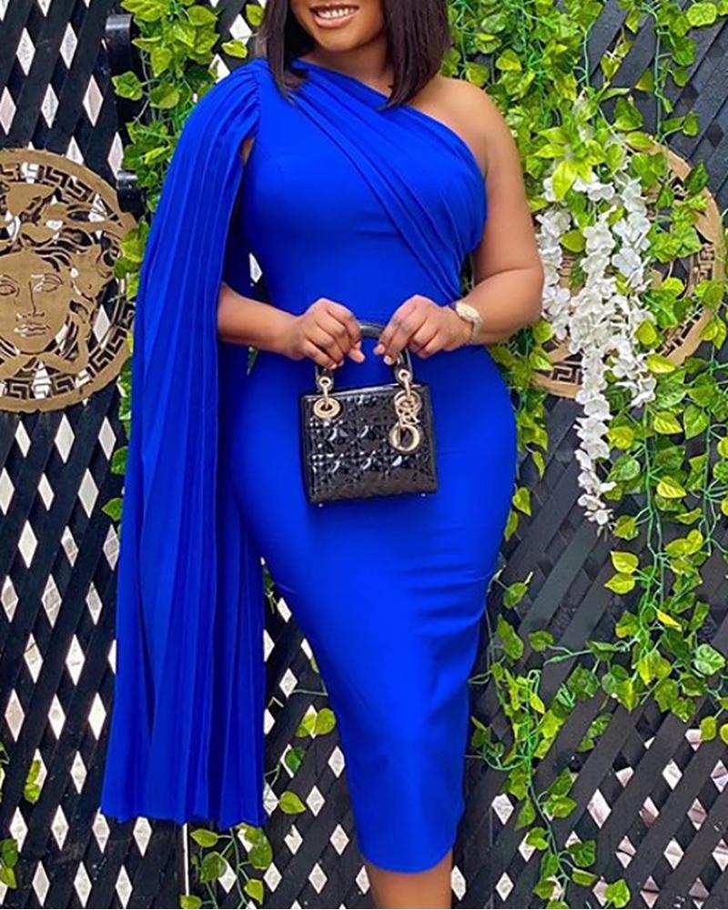 Plus Size One Shoulder Ruched Evening Dress, Blue