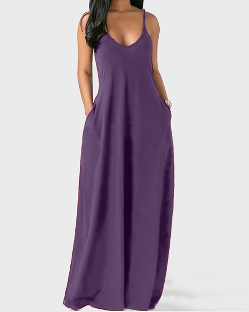 Plus Size Pocket Design V-Neck Spaghetti Strap Maxi Dress, Purple