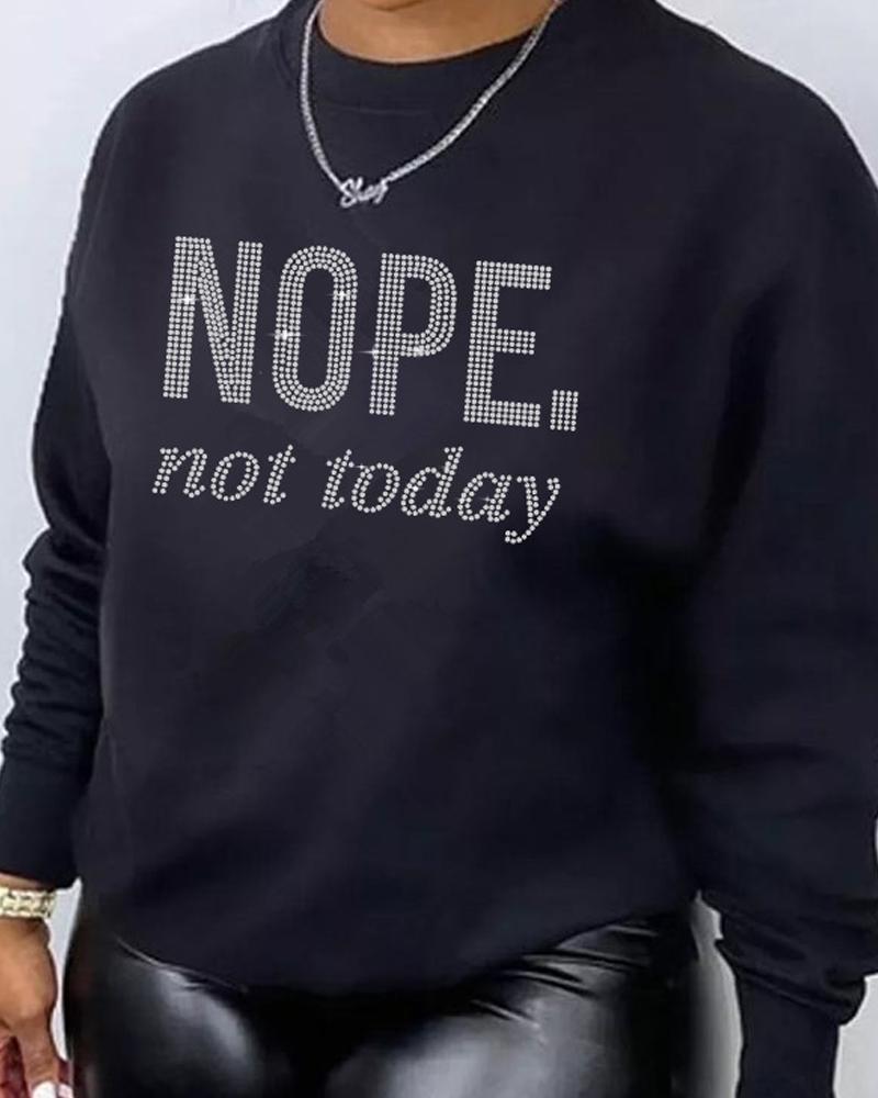 Plus Size Rhinestone Letter Pattern Long Sleeve Sweatshirt, Black