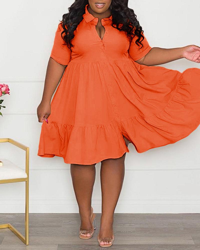 Plus Size Ruffle Hem Button Front Flowy Shirt Dress, Orange