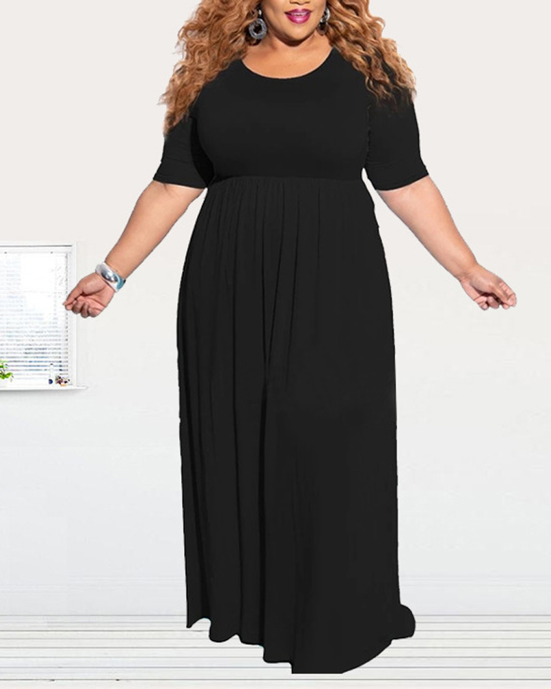 Plus Size Short Sleeve Ruched Design Maxi Dress, Black