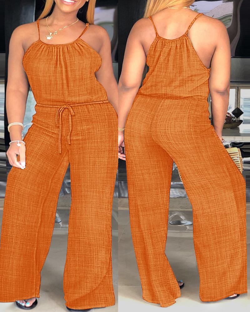 Plus Size Spaghetti Strap Stright Leg Drawstring Jumpsuit, Orange
