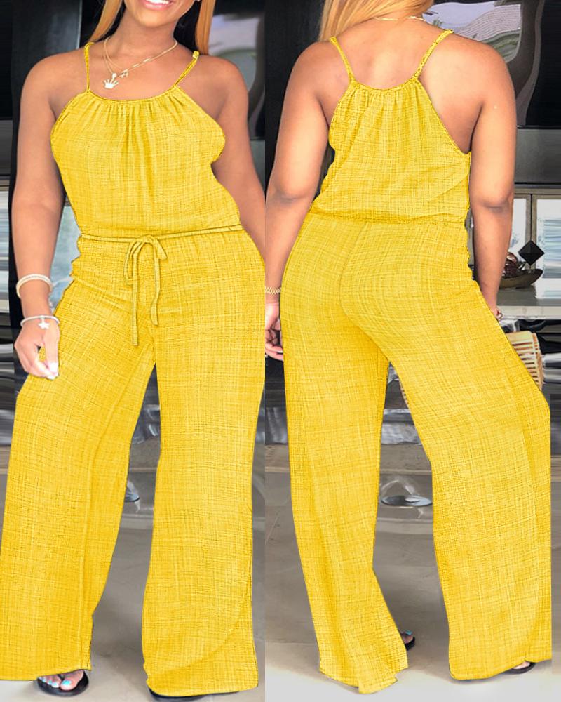 Plus Size Spaghetti Strap Stright Leg Drawstring Jumpsuit, Yellow