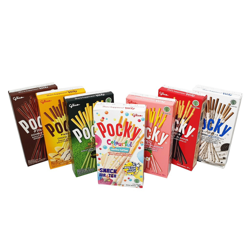 Pocky cemilan trend sepanjang masa dari Jepang yg terkenal seantero dunia. Diciptakan oleh Ezaki Glico Co Ltd - Japan pada tahun 1962. Berupa biskuit seperti pretzel yg renyah dan enak berbentuk stik dgn salut coklat yg berkelas.