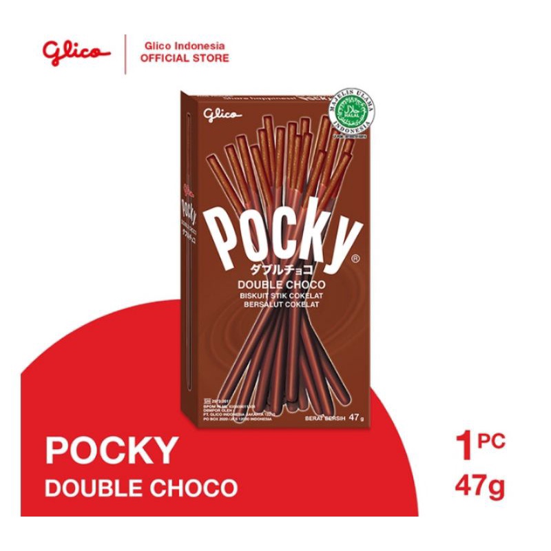 Glico Pocky Biskuit Stik Double Choco 47 g merupakan produk biskuit dengan bentuk stik sehingga menjadikan mudah untuk dikonsumsi ngga belepotan ketika dimakan, dan ada bagian stik yang bersih tanpa terkena krim untuk memudahkan mudah digenggam dengan jari-jari tanpa khawatir takut kotor. Dengan bentuk stik juga memudahkan untuk dibagikan kepada teman atau kerabat untuk berbagi kebahagiaan bersama. Kemasan luar berbentuk box yang bisa dibuka dan ditutup untuk disimpan memudahkan untuk dibawa kemana aja, dan tetap higienis karena terdapat kemasan foil di dalam kemasan box. Dapat dikonsumsi langsung, ataupun dikonsumsi bersama hidangan penutup lainnya seperti buah, toping cake, es krim, dll. Terbuat dari bahan pilihan dengan kualitas tinggi, menciptakan biskuit renyah tanpa remah dan rasa double choco lezat dan manisnya pas. Nikmatin kelezatan biskuit stik berlapis krim stroberi tebal yang enak, praktis, dan ngga berantakan.
