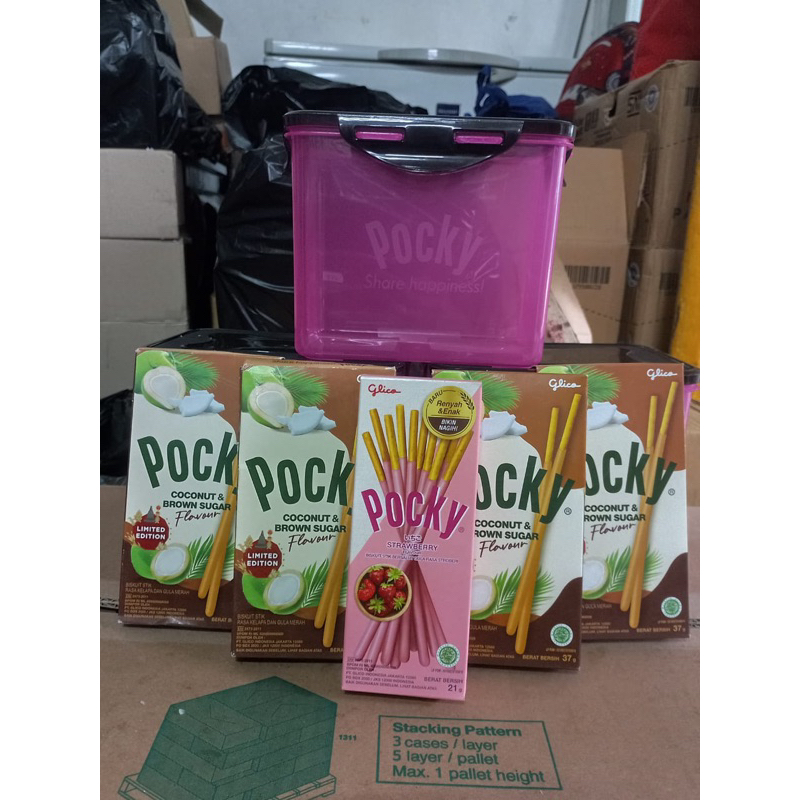 Ready lagi variant baru kak 4pc pocky coconut brown sugar+1pc pocky strawberry gratis countainer cantik cuma *35K* klo ini normal lbh mahal ya karena yg 4pc kemasan besar jd normal d toko 40rban tanpa hadiah..gas yukk kak