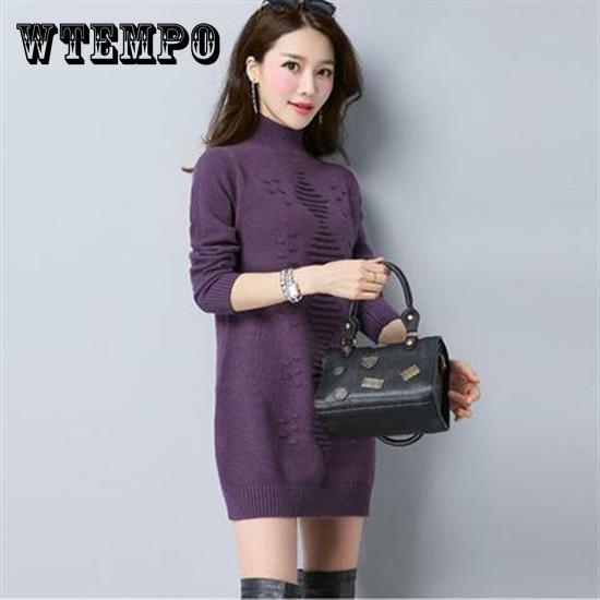 Pofulove женская зимняя теплая водолазка трикотажные платья длинный вязаный однотонный свитер юбка толстая