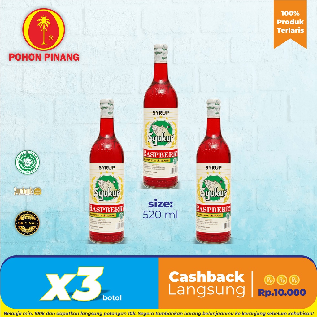 Pohon Pinang (3 botol) Syrup Syukur Raspberry 600ml