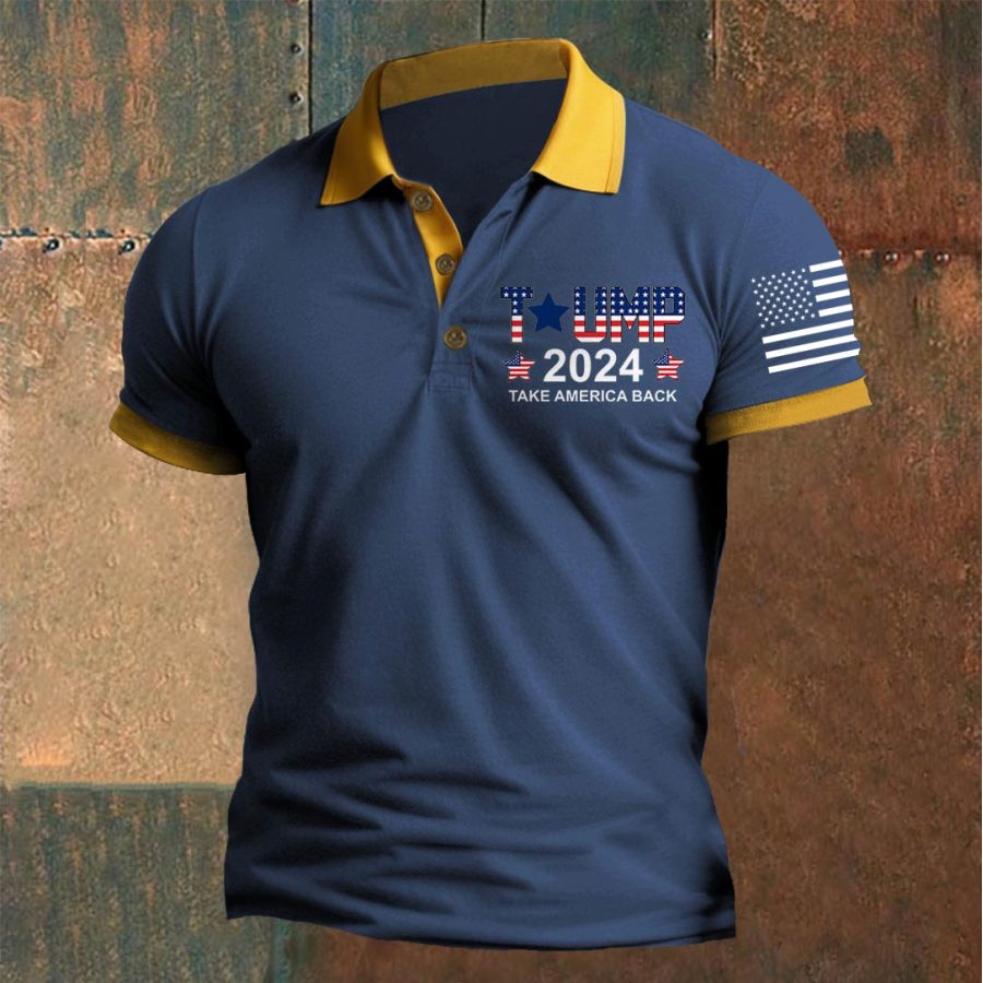 Polo Para Hombre Take America Back Bandera Americana Vintage Al Aire Libre Bloques De Color Manga Corta Verano Diario Tops