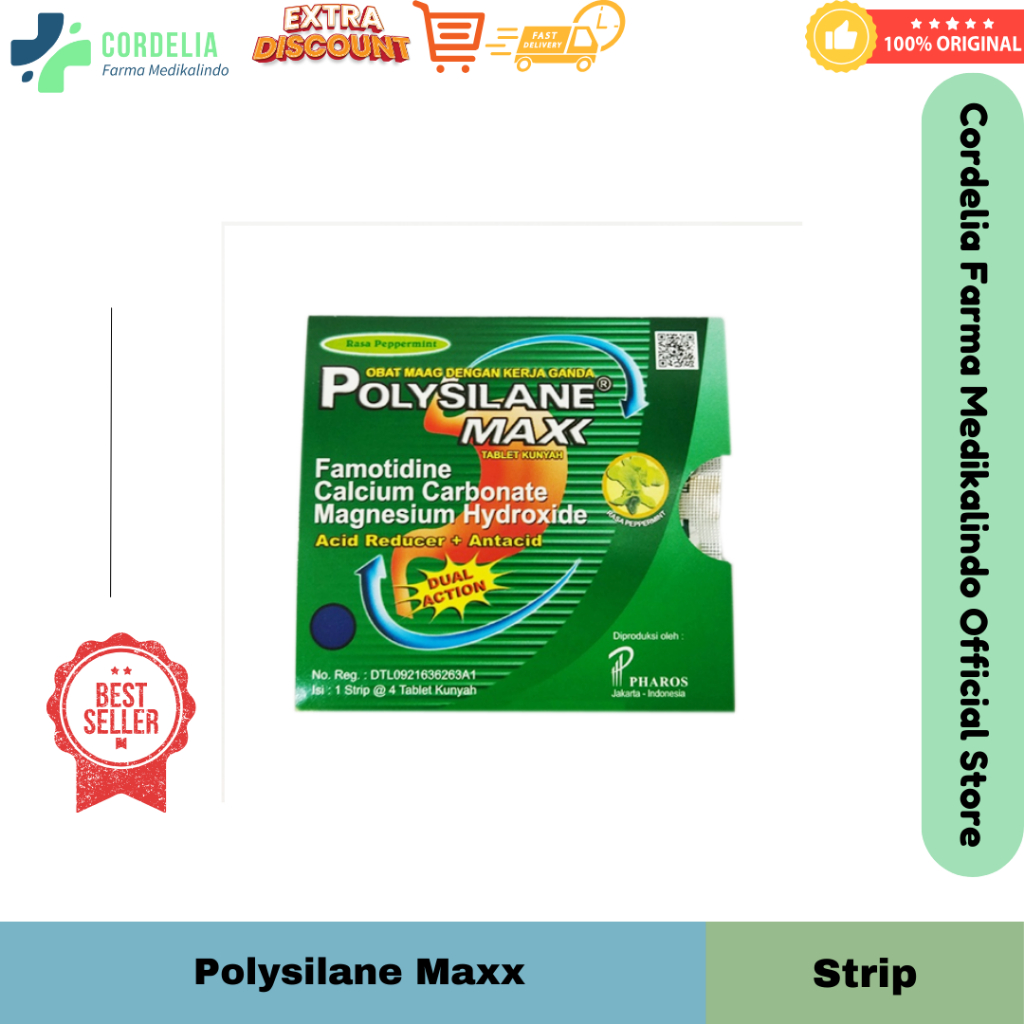 POLYSILANE MAX PEPPERMINT TABLET merupakan obat yang digunakan untuk mengatasi gangguan pada saluran pencernaan seperti gastritis, perut kembung, maag, dispepsia, hiatus hernia, tukak lambung dan usus duabelas jari.