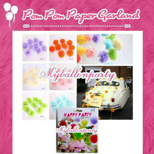 Pemakaian Pom Pom Paper Garland ini dapat dipadukan juga dengan Balon Latex Metalik / Doff, Pom-Pom Kertas, Honeycomb Ball serta Balon Foil Dekorasi lainnya