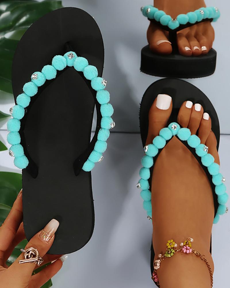 Pom Pom Toe Post Muffin Flip Flops, Blue