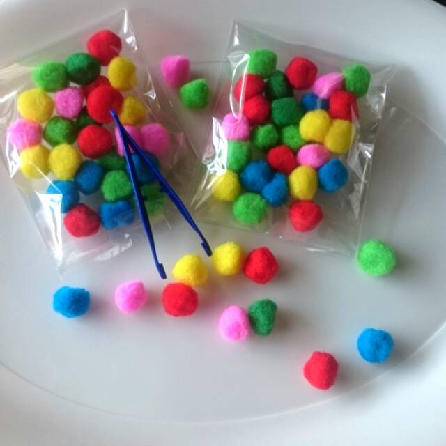 Pompom 2 cm campur warna, tidak termasuk jepitan