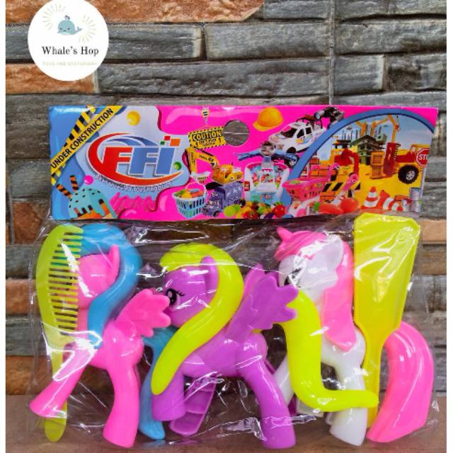 Boneka kuda ponny berbahan plastik, dalam satu bag terdiri dari 3 buah kuda ponny dan dilengkapi 2 aksesoris sisir