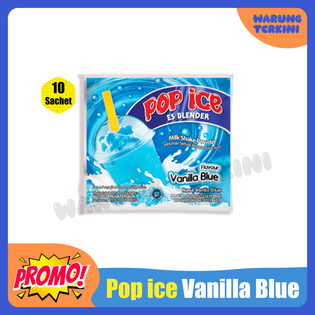 Nikmati sensasi lembut dan manis dari perpaduan rasa vanilla dengan sentuhan buah blue dalam Pop Ice Vanilla Blue. Minuman serbuk praktis yang cocok disajikan dingin, menyegarkan, dan pas untuk semua kalangan.