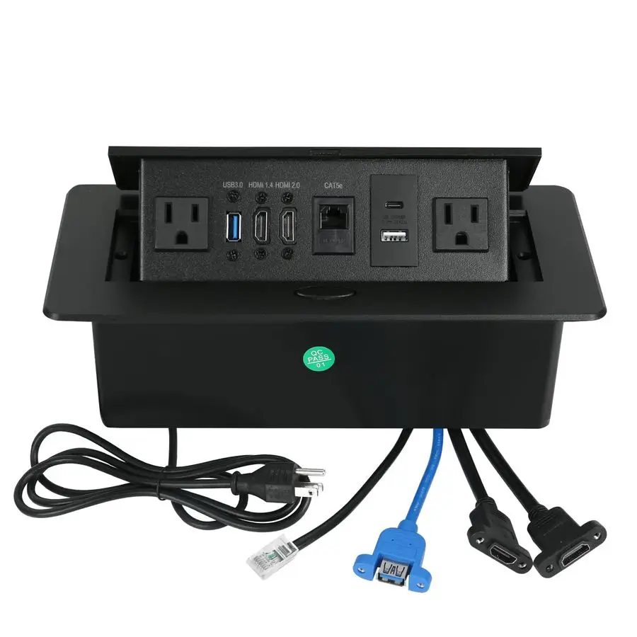 Pop up Power Strip Box Desktop Pop Up Outlet Recessed Multimedia Strip Socket Conference Table Power Hub Hidden Table Connection