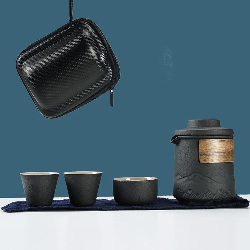 Portable Ceramic Quick Tea Set with One Pot and Three Cups Kung Fu Tea Set Style E