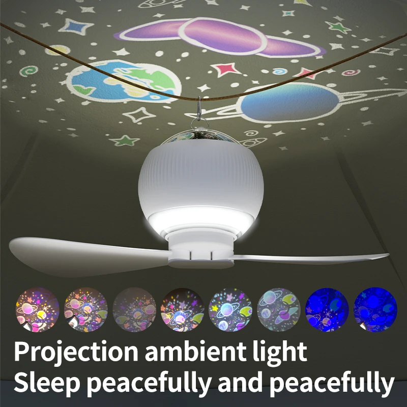 Portable LED Ceiling Fan Light 3in1 Rechargeable Model With Starry Sky Projection 2 Levels Wind Speed For Indoor Outdoor Camping