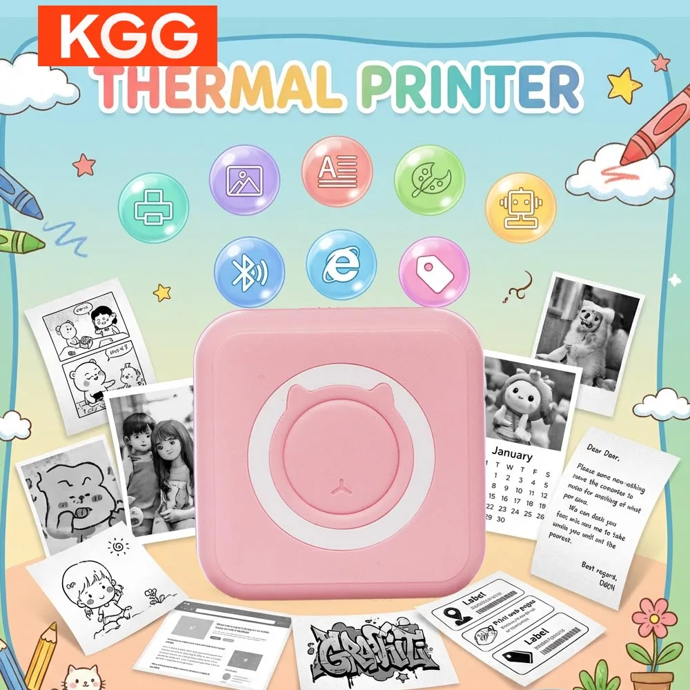 Portable Wireless Printer With 1 Roll Printing Paper Mini Pocket Bluetooth Thermal Printer Compatible Android iOS Smartphone