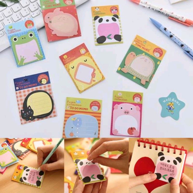 post it bentuk hewan kreatif, lucu, dan praktis. gampang dibawa, lem yang bagus, tidak mudah jatuh, dengan motif binatang yang baru.