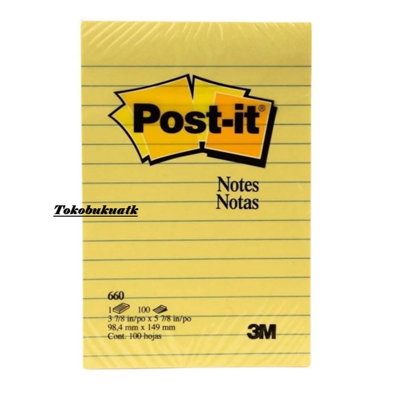 Post It Notes 660 Bergaris - Catatan tempel (Sticky Notes) yang memiliki garis-garis pada permukaannya untuk memudahkan penulisan. Post It ini cocok untuk penggunaan di berbagai permukaan seperti kertas, buku catatan, monitor, meja, dan lainnya.