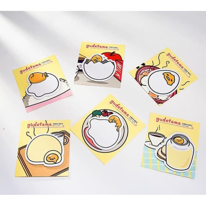 Stick note Gudetama 2bd Edition ini terbuat dari kertas, desain gudetamanya lucu abis. Bisa kamu gunakan untuk meninggalkan pesan/ memo atau remindermu.