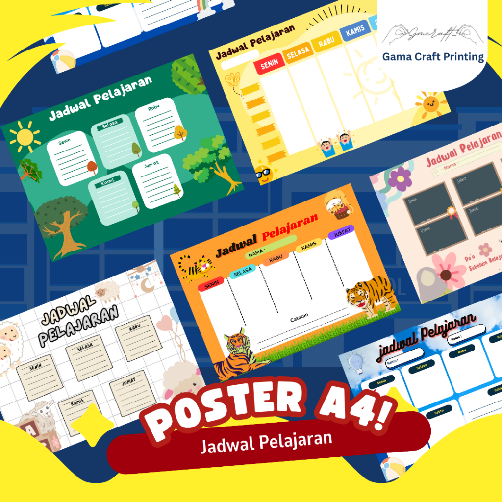 Cetak Poster Jadwal Pelajaran A4 I Poster I Sticker bisa tempel