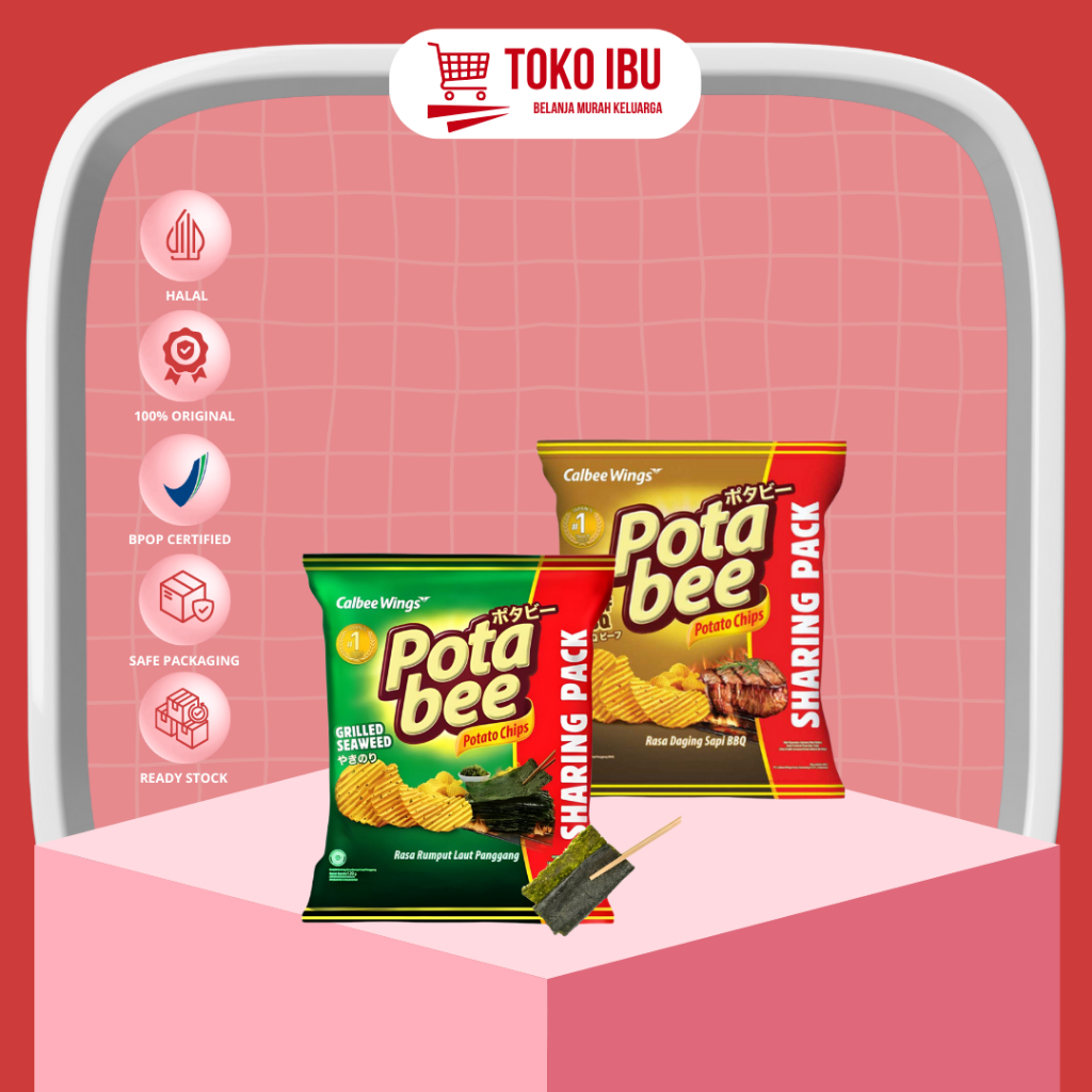 Potabee terbuat dari kentang asli yang diolah dengan V-Cut Technology untuk menghasilkan tekstur renyah dan bumbu rumput laut panggang yang menggugah selera.