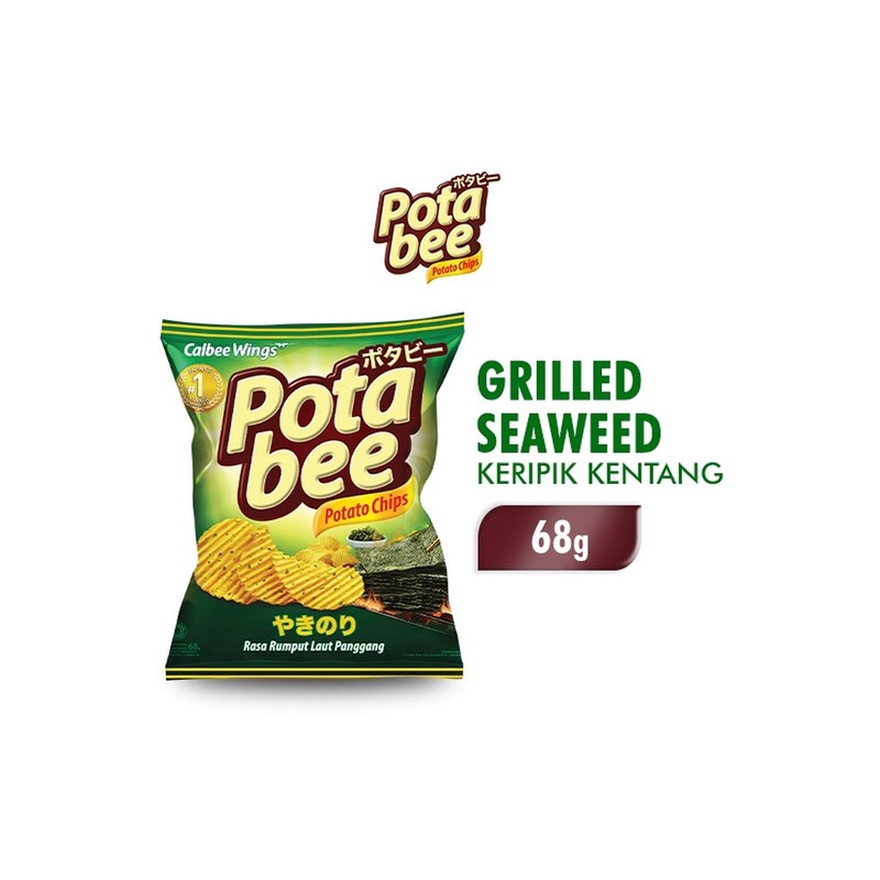 Potabee potato chips seaweed, keripik kentang rasa rumput laut panggang. Komposisi: kentang, minyak kelapa sawit (mengandung antioksidan butil hidrokinon tersier/TBHQ, bumbu rasa rumput laut (mengandung gula, garam, penguat rasa mononatrium glutamat, rumput laut, perisa alami (mengandung antioksidan tokoferol).