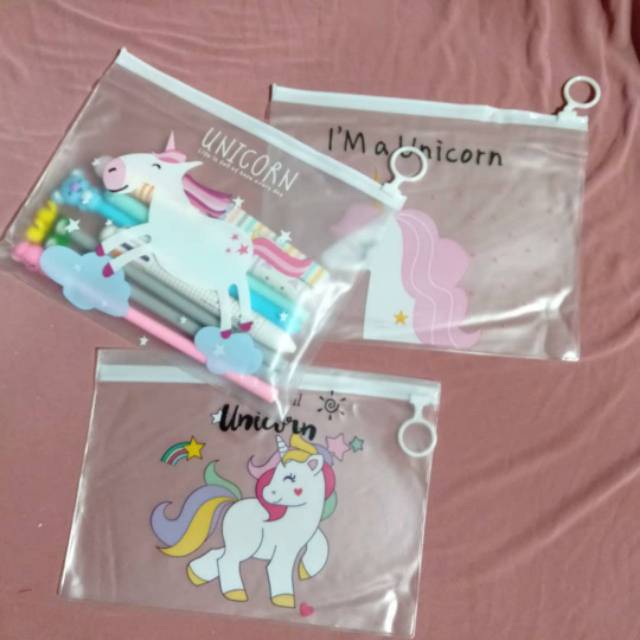 Pouch Pensil Transparan Motif Unicorn