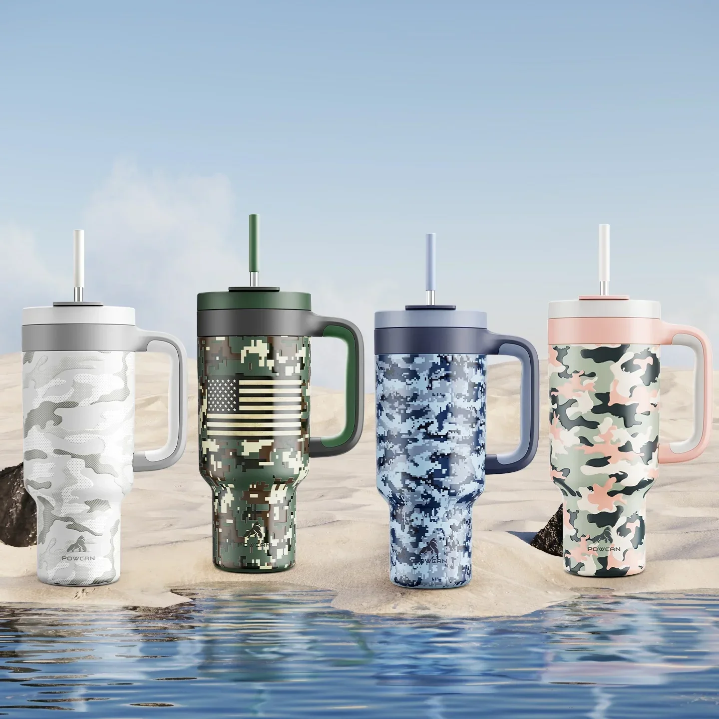 Powcan 40 унций, новая ручка стакана, соломенная камуфляжная печать, нержавеющая сталь, дорожная герметичная вакуумная автомобильная кружка, уличная вакуумная чашка