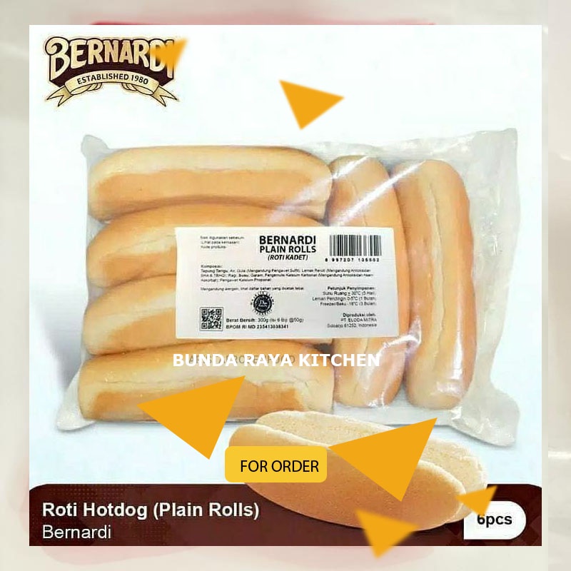 Premium Roti HOTDOG isi 6 / / BERNARDI PLAIN ROLL Isi 6