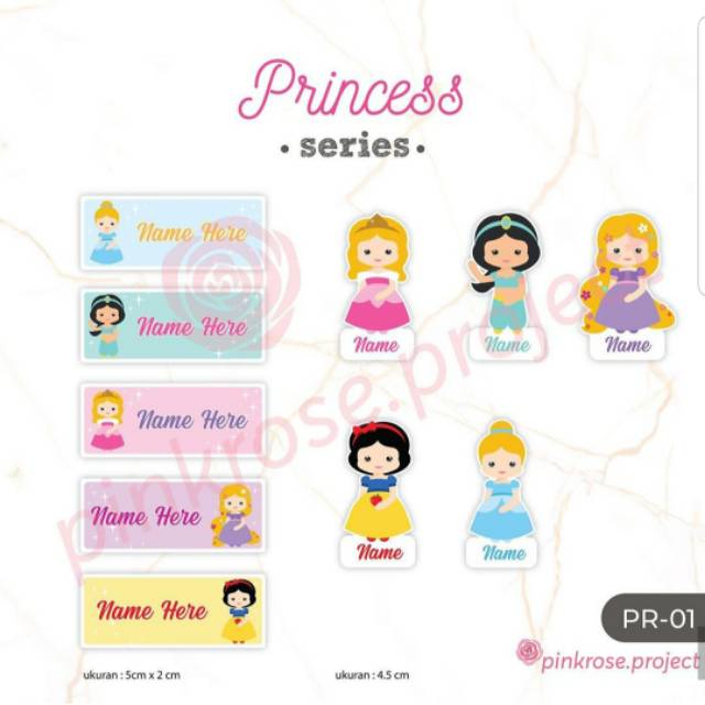 Princess Sticker Label Nama Anak Waterproof 60 pcs