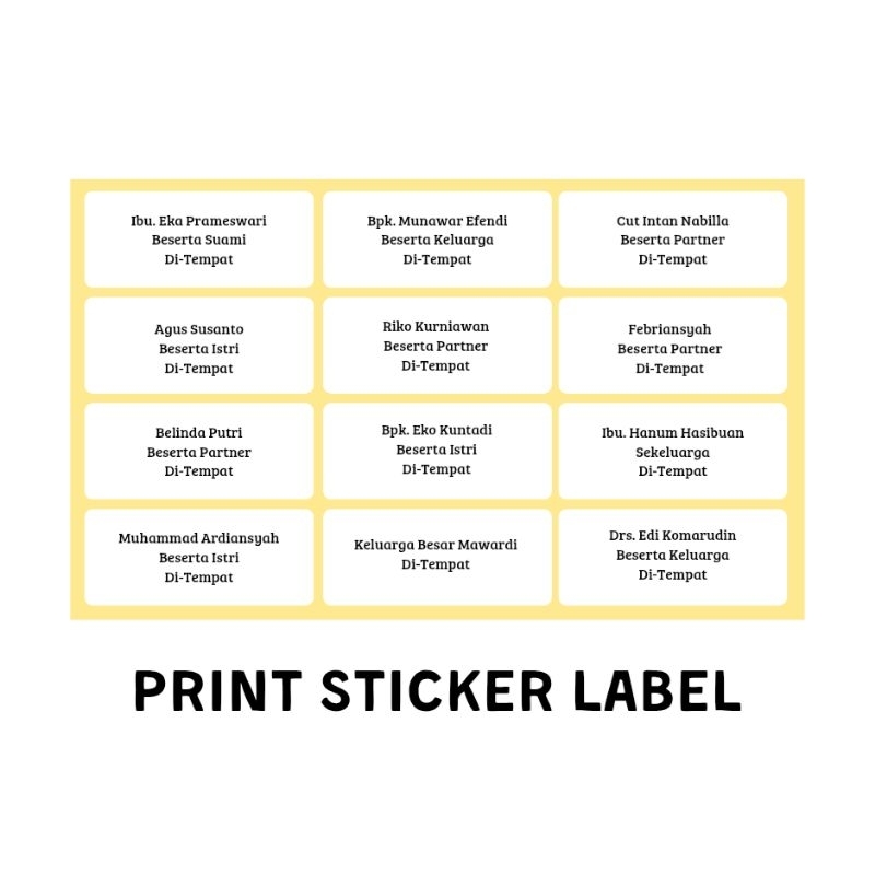 Anda cukup mengetik daftar nama tamu yang ingin diundang bisa ketik melalui Microsoft Excel ataupun Microsoft Word Lalu kirim data nya ke tim desain kami, Jika anda memesan sekaligus undangan silahkan cek out secara bersamaan dengan undangan yang anda pesan.