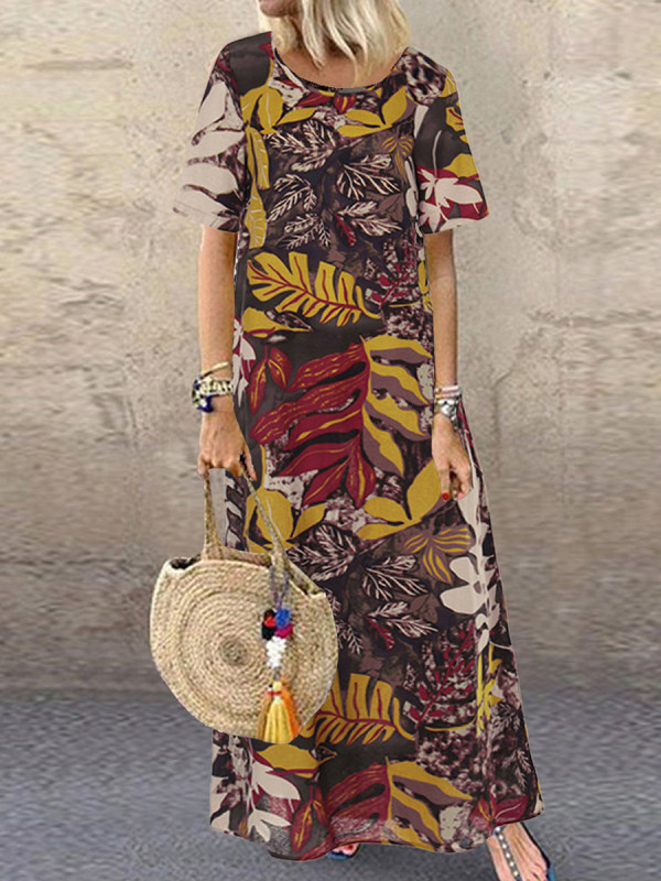 maxi dresses,printed short sleeve dress