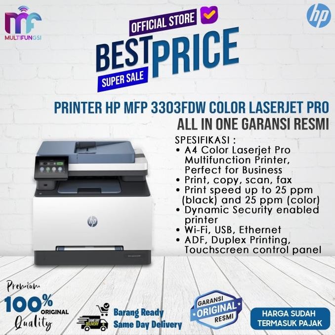 Printer HP MFP 3303fdw Color LaserJet Pro All In One Garansi Resmi