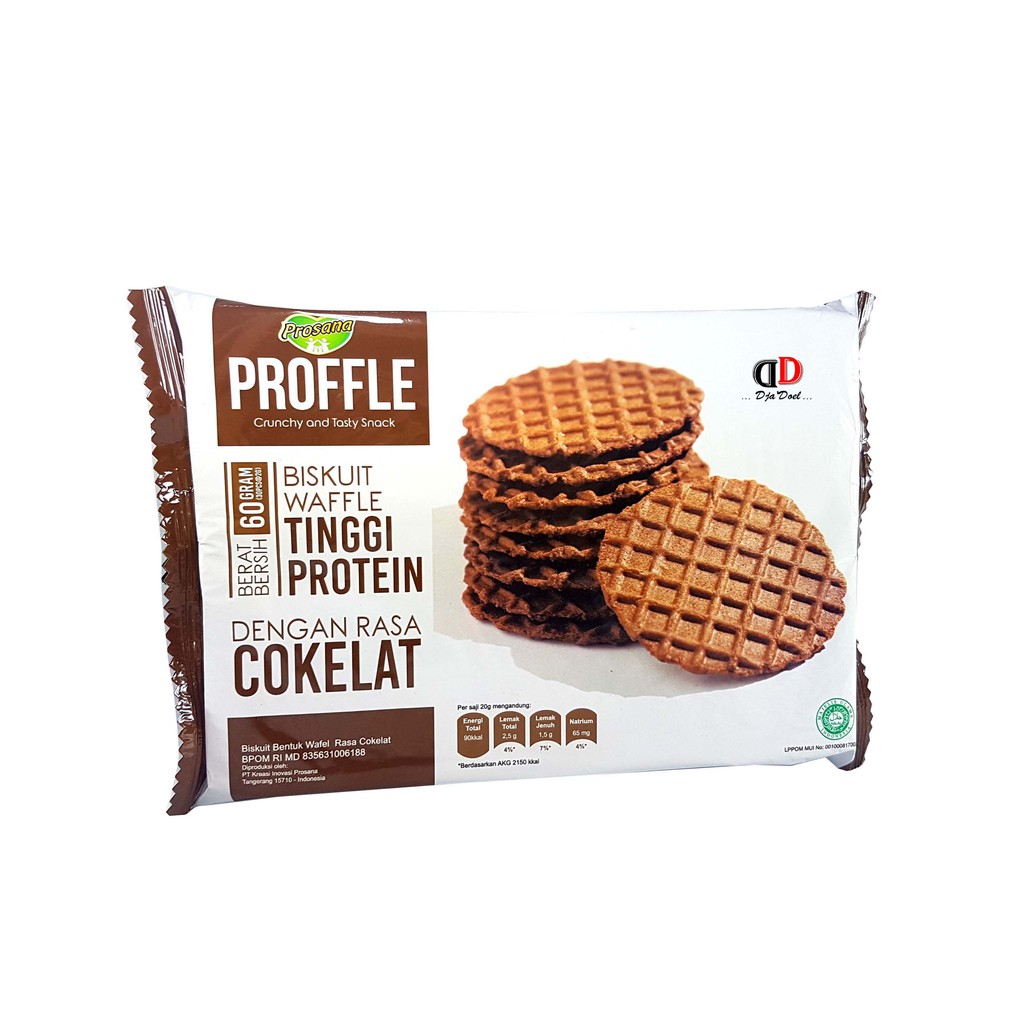 Proffle Coklat 60gr merupakan high protein waffle dengan kandungan protein yang tinggi (12-15 gram), sehingga membantu membangun dan memperbaiki jaringan tubuhmu. Sangat cocok bagi kamu yang sedang berolahraga rutin dan dalam program pembentukan muscle mass. BPOM: MD 835631006188 Shelf Life: 12 Months