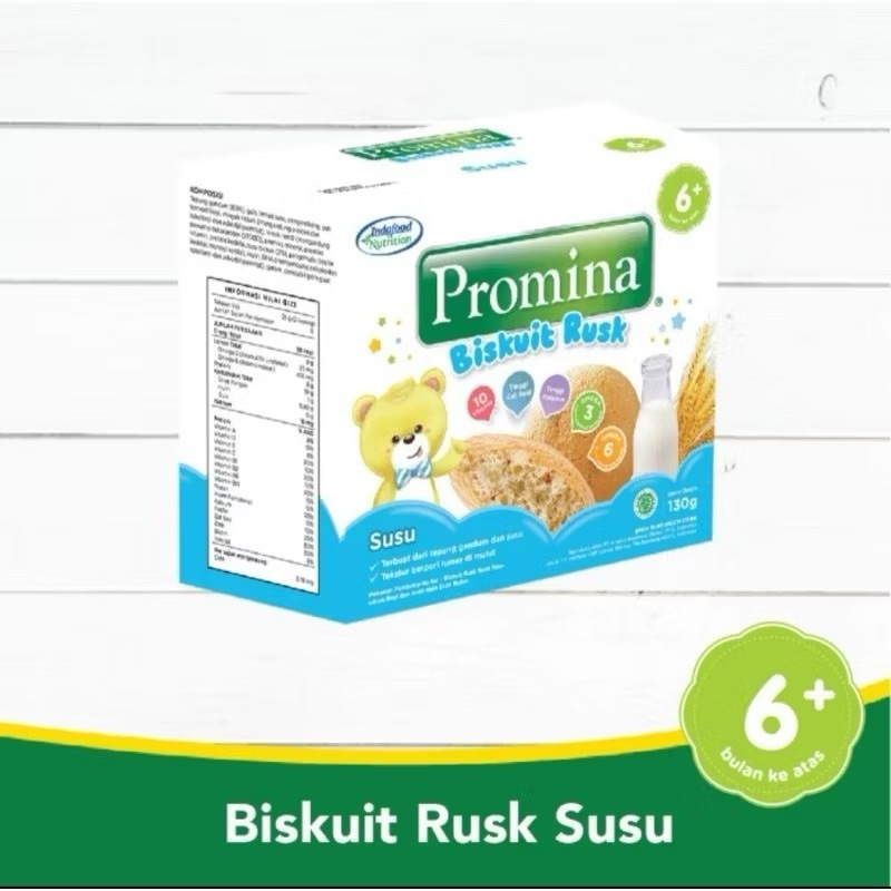 Promina Biskuit Rusk dengan tekstur berpori sehingga mudah lumer dimulut dan bentuk biskuit yang mudah digenggam untuk melatih kemampuan menggenggam si Kecil. Biskuit Rusk cocok untuk bayi 6 bulan keatas dengan gizi lengkap untuk memenuhi nutrisi si Kecil. Promina Biskuit Rusk hadir dalam 3 varian untuk mengenalkan berbagai macam rasa kepada si Kecil yaitu beras merah, kacang hijau dan susu.