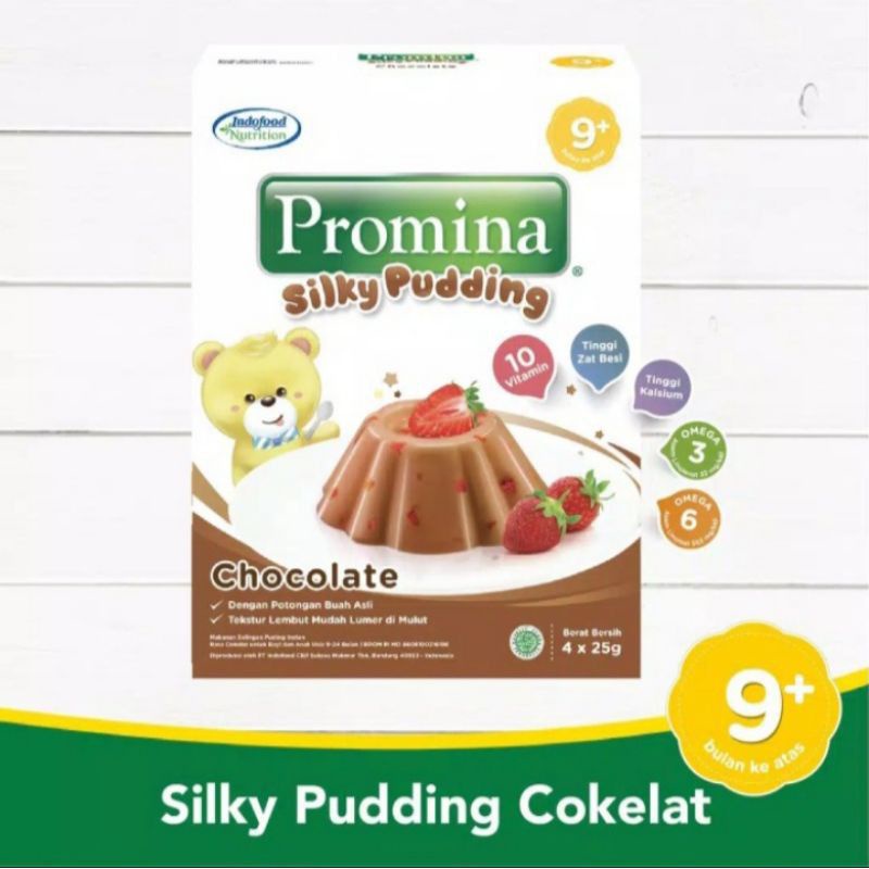 Promina Silky Pudding terbuat dari perpaduan susu full cream berkualitas tanpa bahan pengawet dengan tambahan ekstrak serta potongan buah asli. Promina dengan formulasi 4 Te-PAT dimana tekstur, pilihan rasa dan supan gizinya disesuaikan dengan kebitihan setiap tahapan usia bayi dan anak