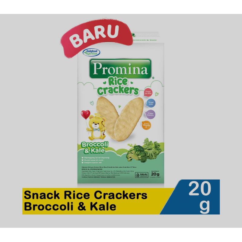 promina rice crackers broccoli dan kale lezat dan aman untuk si kecil, dibuat dengan brokoli dan kale asli, tanpa bahan pengawet dan msg. Pembuatannya dipanggang bukan digoreng